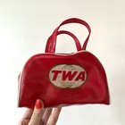 Vintage 60s Twa Miniature Airline Bag - Red Vinyl Zip Small Pouch Collectible
