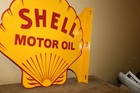 Vtg Shell Motor Oil Gas Station 2 Sided 19" Porcelain Metal Flange Sign Nice