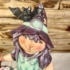 Vintage Ceramic Hand Painted Witch W/ Cauldron, Frog, Jack-o-lantern & Bat