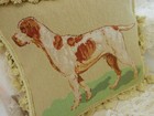 14" Vintage Needlepoint Pointer Dog Pillow Cover Hunting Dog Design Decor