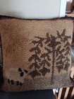 Handmade Cross Stitch Throw Pillow Cabin Forest 14x14 Zipper Back