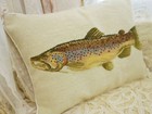 16" Vintage Needlepoint Trout Pillow Cover Fish Design Decor