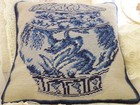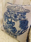 12" Vintage Needlepoint Ginger Jar Pillow Cover Blue White Chinoiserie