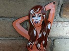 Vintage Dunlop Tires Porcelain Advertising Sign Tire Brunette Girl 15" X 5"