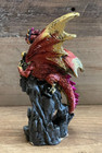 Dragon On Castle, Red Resin Statue 4" X 3"