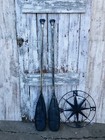 2 Vintage Navy Blue Painted Wood Boat Oars 76" Lake House Canoe Paddle Nautical