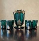 Eapg Northwood Leaf Medallion (regent) Pitcher & Six Tumblers In Emerald Green