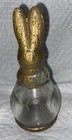 Antique Victory Glass Rabbit Candy Box Container Easter Bunny Tin Lid Gold