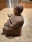 Cast Iron Man In Chair Coin Bank Hand Painted Vintage
