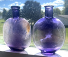 Pair Of Nice Amethyst Colored Pumpkin Seed Flasks Small Size 1880's Era Dug L@@k