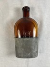 1892 Hp Cork Top Dark Amber Glass Flask With Original Tin Cup / Holder