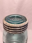1880's Pint Aqua Glass Mason 1858 Hero Cross Fruit Jar, Matched Lid & Red Spot