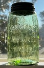 Antique Swayzee's Improved Mason Jar Apple Green 1 Quart Whittled W/ Zinc Lid