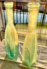Iridescent Patina (2) Pepper Sauces, 4 Sided Crude Appied Lips Kansas Aqua Blue