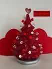 Ceramic Valentine Tree, 9.5 Inch Red With Silver Base , Heart Bulbs