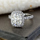Moissanite Halo Engagement Ring Solid 14k White Gold 2.80 Carat Cushion Cut Vvs1