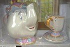 Disney Mrs Potts Tea Pot With Chip Tea Cup & Saucer Beauty And The Beast New