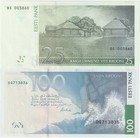 Estonia Lot 2 25 100 Krooni Banknote 2002 Uncirculated Condition P#84-b,88-b