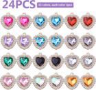 24pcs Rhinestone Heart Charms In 12 Colors For Diy Jewelry Making