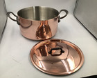 Mauviel 1830 France Hammered Copper Stew Pot W/ Brass Handles & Lid