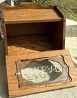 1980s Solid Wood (oak) Farmhouse Bread Box With Glass Window --15” X 11"x 10-1/4