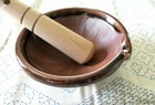 Japanese 8.5"d Ceramic Brown Suribachi Mortar Bowl & Wooden Pestle Made In Japan