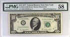 1977 A Overprint On Back Error $10 Frn New York Stamp Ink Note Pmg Choice Au 58