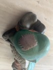 Vintage Ceramic Garden Gnome Figurine Reclining Elf Sage Green Brown Yellow 1979