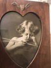 Vtg Black White Lithograph 'cupids Arrow' Sleeping Parkinson Heart Wood Frame