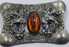 Antique Victorian Brooch Sash Pin Faceted Amber Glass Gryphons Dragons C3-100sp