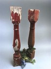 Set Of 2 Reclaimed Carved Wood Antique Spindles Balusters Trim Posts Pillar Arch