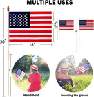 12 X 18 American Stick Flag Large Size With 30"x3/8" Wood Staff Heavy Duty