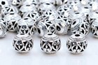 10 Pcs Antique Silver Tone Hollowed Tibetan Spacer Beads Round 8mm