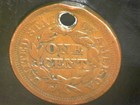1851 Braided Hair Large One Cent Coin Holed | Historic ✨ 1 Day Ship!