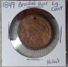 1849 Braided Hair Large Cent; Circulated Penny; Holed; W150