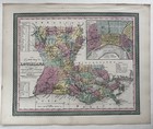 Louisiana State W/ New Orleans City Plan 1855 Cowperthwait Lovely Hand Color Map