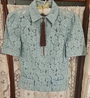 Antique Vintage 30s Blue Crochet Lace Skirt Top Dress Set Xs/s