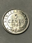 1940 C Newfoundland Canada Silver Five Cents 5c Canadian Coin Brilliant Unc