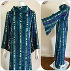 1970s Vintage Neon Teal Multi Color Guatemalan Poncho Ladies One Size