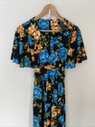 Vintage 1970's Primstyle Japan Women's Size 12 Blue Floral Zip Boho Shirt Dress