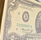 1976 2 Dollar Bill, Low Serial Number. Series C Super Crisp Very Nice Near Mint