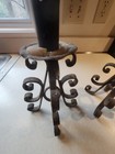 Pair Of Rare Antique 19th Century Hand Forged Cast Iron Candlesticks 10"
