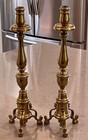 Vintage Pair Solid Brass Push Up Taper Candlesticks Set Of Two 14'' Late 19th C.