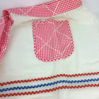 Vintage Handmade Cross Stitch Half Apron Red Gingham Pockets