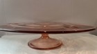 Vintage Pink Floral Etched Pedestal Cake Plate, 11 1/2”