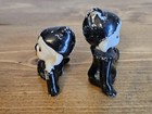 Vintage Rare Two Small Ceramic Pixies Elves Dressed Black Japan 2" W X 2" H