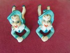 #y Pair 1950s Vintage Japan Ries Ceramic Green Pixie Elf Figurines Cute Elves