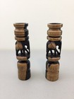 Set Of 2 Vintage Wooden Hand Carved Elephant Candlesticks Standing Candleholder