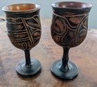 Vintage Wooden Carved Goblets Set Of 2 7" Tall