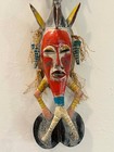 Large Vintage Hand Carved Wooden African Tribal Mask Wall Art Ram Horns 25"